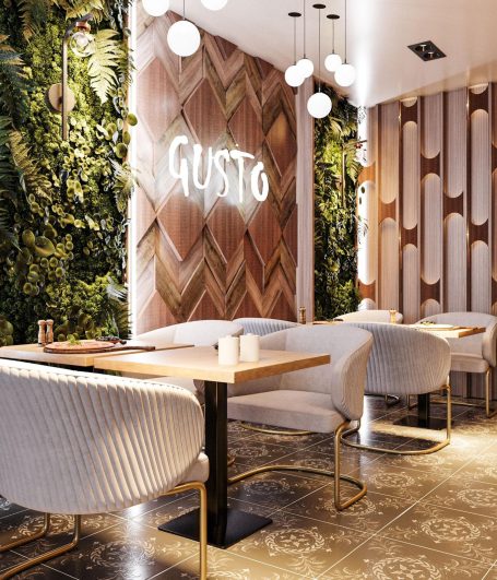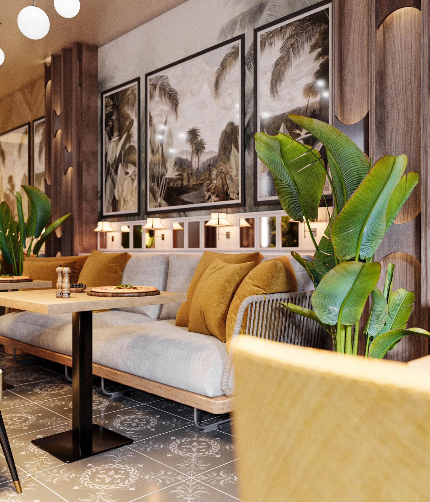 Projektplanung, Möbelplatzierung und -montage, Beleuchtung und Dekoration sowie Außenwerbung – ein Projekt, das wir übernommen haben.